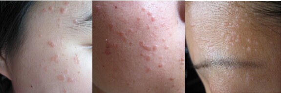 症状二:扁平疣的症状表现为针头至米粒大或稍大的扁平丘疹,呈圆形或不规则形,略高于皮肤表面,也可显著地突起而形成圆顶状。表面光滑,境界清楚,触之较硬,为浅褐或灰白、淡黄或正常皮色。