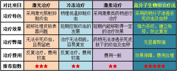 高分子生物组合疗法与市面上一些疗法的对比: