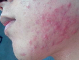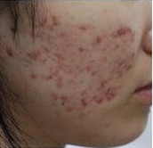 另外,还有几种重症型青春痘如聚合性青春痘、坏死性青春痘及暴发性青春痘等,皮损主要是大的结节、囊肿、脓肿和溃疡,并形成疤痕,对身体影响更大,有的尚伴有全身症状,治疗起来亦比较困难。还有一种叫恶病质性青春痘的超重型青春痘,虽极少见,但却相当严重。这类患者的头面部全是大片的结节、囊肿、脓肿和硬瘢,多处流脓渗血,患者苦不堪言。